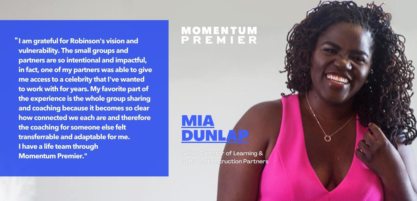 "My experience in Premier has prompted such a major shift in not just my businesses but also in the way I think. Robinson humbly guided and assisted us through this process exposing the keys needed for the next level. I loved the intimacy of the focused group as it built a sturdy foundation for our team. This experience will stay with me always. Thank you!"